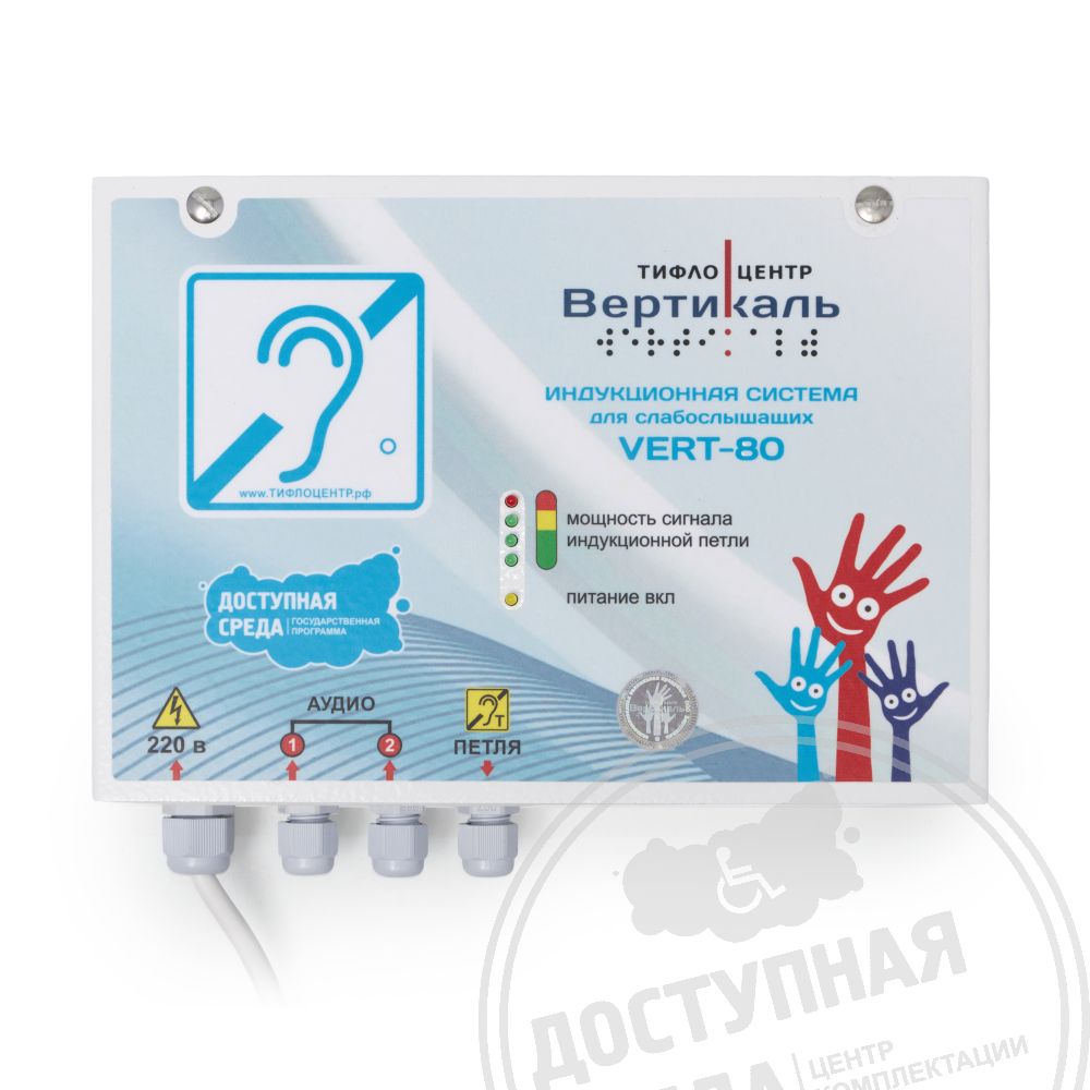 Стационарная индукционная система VERT-80 предназначена для использования в помещениях площадью до 80 кв.м. Усиливает восприятие информации людьми с нарушениями по слуху (использующих слуховые аппараты) в ограниченном пространстве и при большом скоплении людей, а также наличии посторонних звуков или преграды между собеседниками. Наличие в системе фантомного питания, обеспечивающего одновременную передачу по одним проводам питания постоянного тока и информационных сигналов, дает возможность для подключения широкой линейки микрофонов.