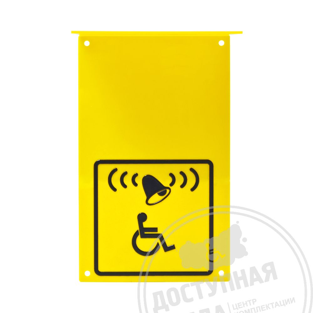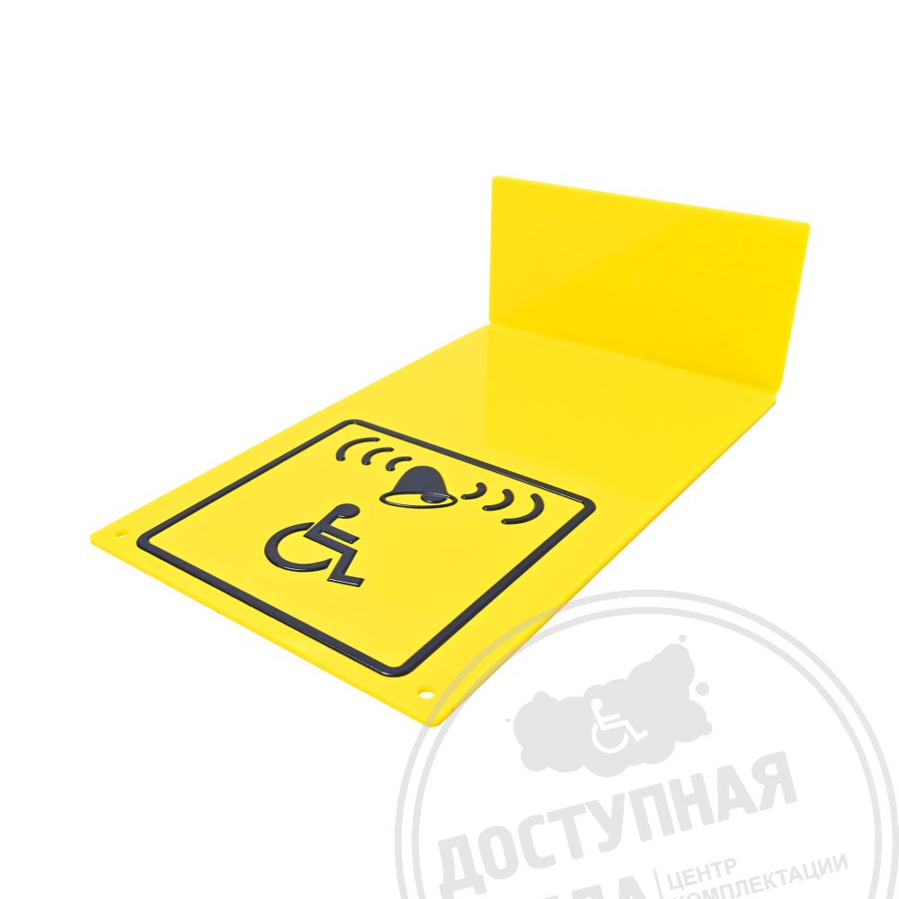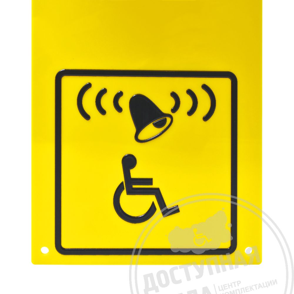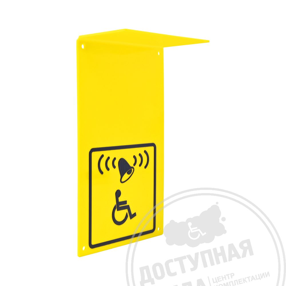 4.3.8.4 ГОСТ Р 52131-2019 Тактильно-визуальный знак обозначения кнопки вызова персонала для оказания ситуационной помощи должен размещаться над кнопкой вызова. Высота расположения верхнего края таких указателей должна быть 1,3 м от уровня поверхности. При наличии тактильно-визуальной информационной таблички и/или знака доступности объекта данный знак устанавливается под ними.