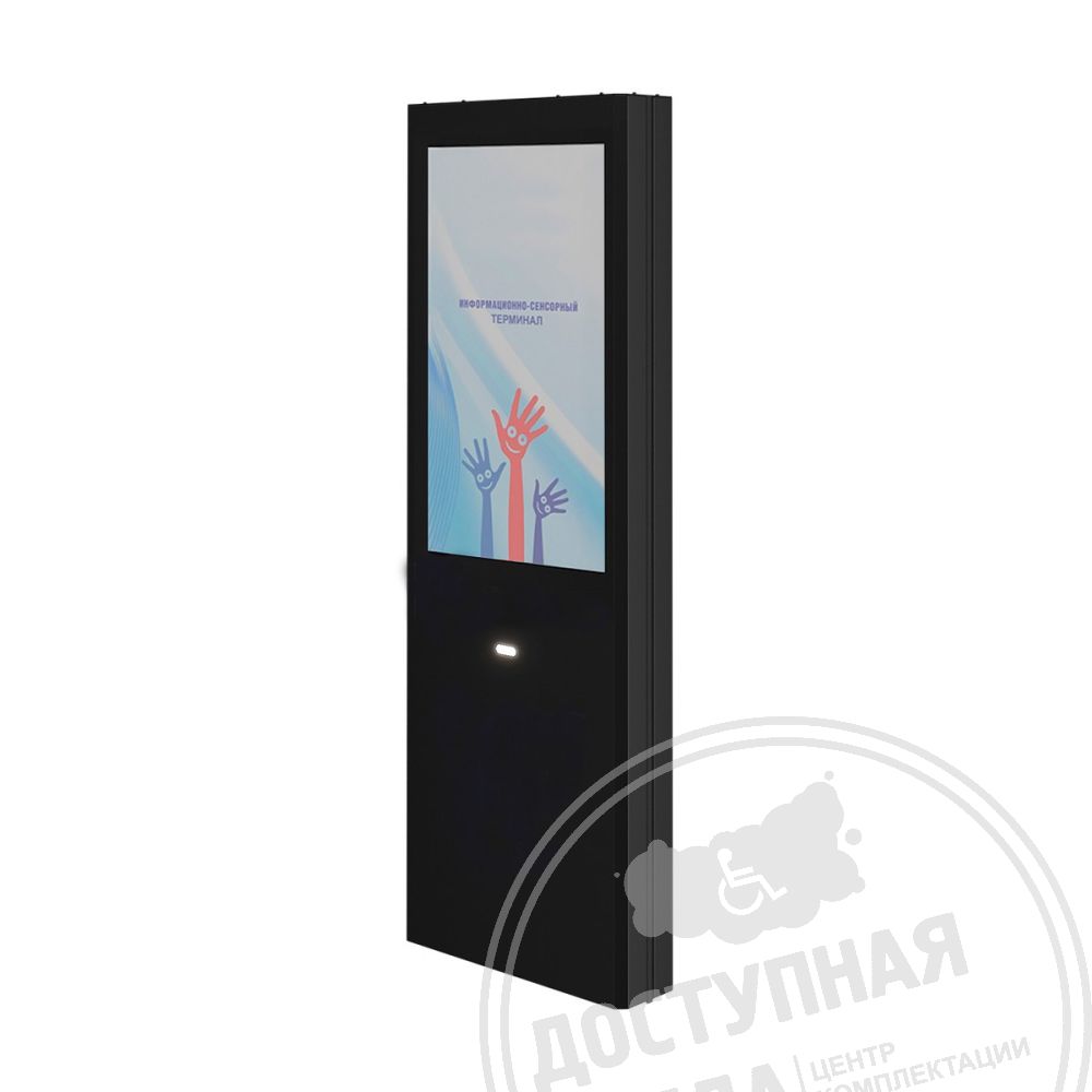 Сенсорный информационный настенный терминал специально разработан для использования его в качестве информационного устройства лицам с ограничениями по здоровью. Антивандальный стальной корпус с контрастной контурной подсветкой, вертикальная сенсорная LED-панель 43, предустановленное программное обеспечение с функцией чтения с экрана и адаптивным меню для инвалида.
