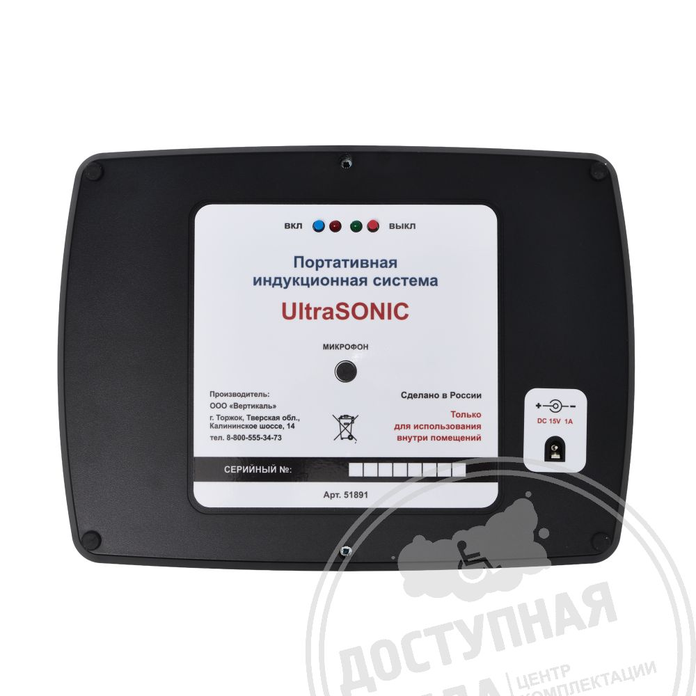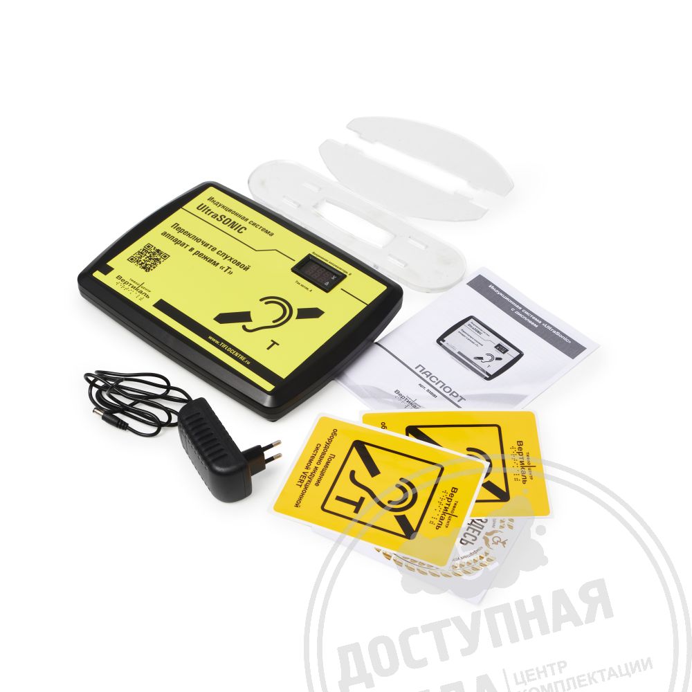 Индукционная петля для слабослышащих "UltraSonik" служит для усиления звука для слабослышащих людей при повышенном уровне постороннего шума или при наличии преграды между собеседниками. Применяется в общественных местах, в зонах обслуживания населения (кассах, зонах получения услуг или информации). Преимуществом данной системы является встроенный электромагнитный измеритель в низкочастотном диапазоне, который показывает эффективность работы индукционного контура, выводя показатели на специальный светодиодный дисплей. Устройство передает чистый усиленный звук на слуховой аппарат (в режиме "Т"), несмотря на большое скопление людей, посторонние шумы и преграды между посетителем и оператором системы.