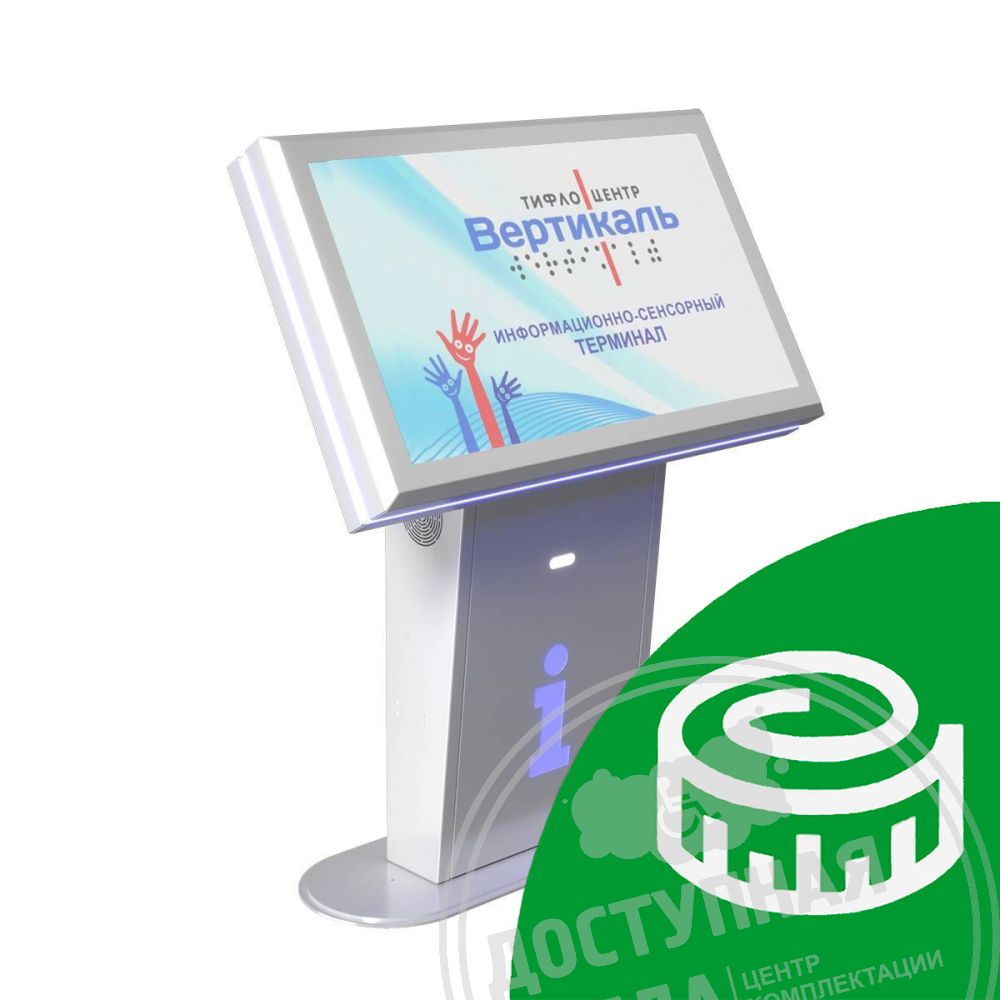 Сенсорный информационный терминал "INFO-VERT-2(43)D" специально разработан для использования его в качестве информационного устройства лицам с ограничениями по здоровью (слабовидящими, в коляске).Терминал имеет стандартное программное обеспечение со специальными возможностями для людей разных категорий.
