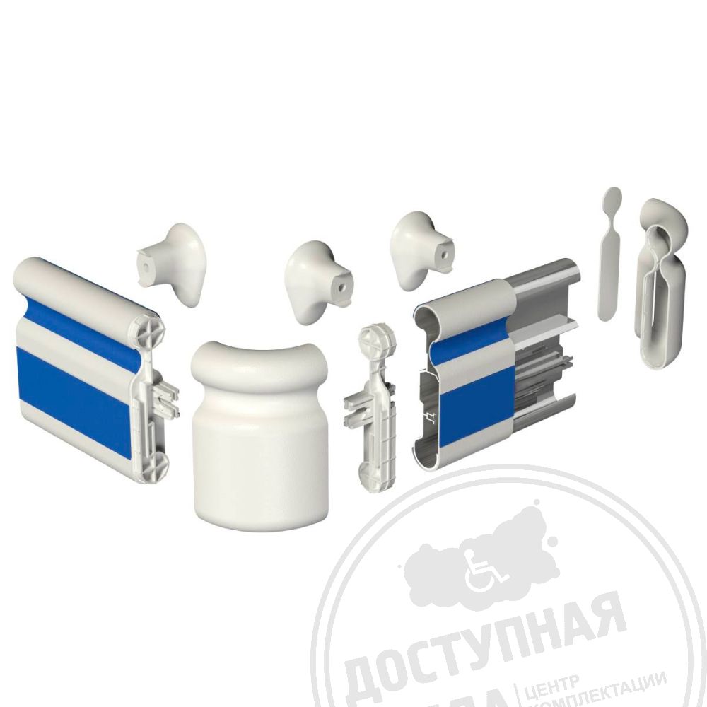С целью обеспечения высоких эксплуатационных свойств поручень должен быть выполнен на основе алюминиевого каркаса толщиной не менее 1,8мм и пластикового покрытия толщиной не менее 2мм. С целью обеспечения удобного захвата кистью руки опорного поручня верхняя часть конструкции должна иметь цилиндрическую форму на протяжении всей длины поручня с радиусом скругления не менее 20мм и синусоидальный изгиб на расстоянии не менее 40мм от верхней точки поручня, с углублением не менее чем на 25мм. С целью обеспечения безопасности поручни должны быть изготовлены промышленным способом, иметь скруглённые края и травмобезопасные окончания.