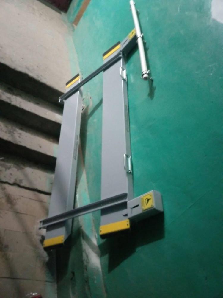 В виду ограниченного места, пандус оборудован откидным механизмом и ручкой, что обеспечит возможность закрепить пандус на вертикальной поверхности и разложить на лестничном марше при необходимости. В разложенном виде пандус опирается на каждую ступеньку лестницы, что позволяет равномерно распределить нагрузку при использовании, в сложенном виде пандус фиксируется посредством магнитных фиксаторов.