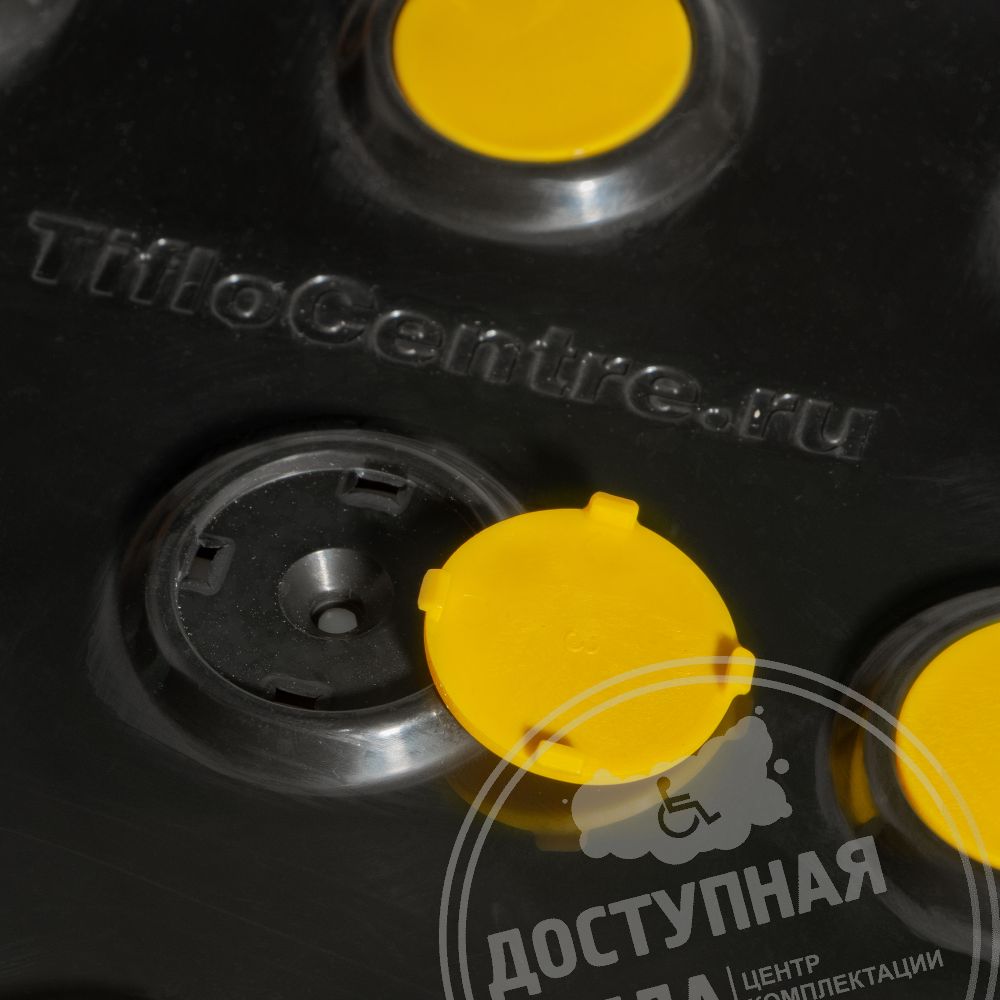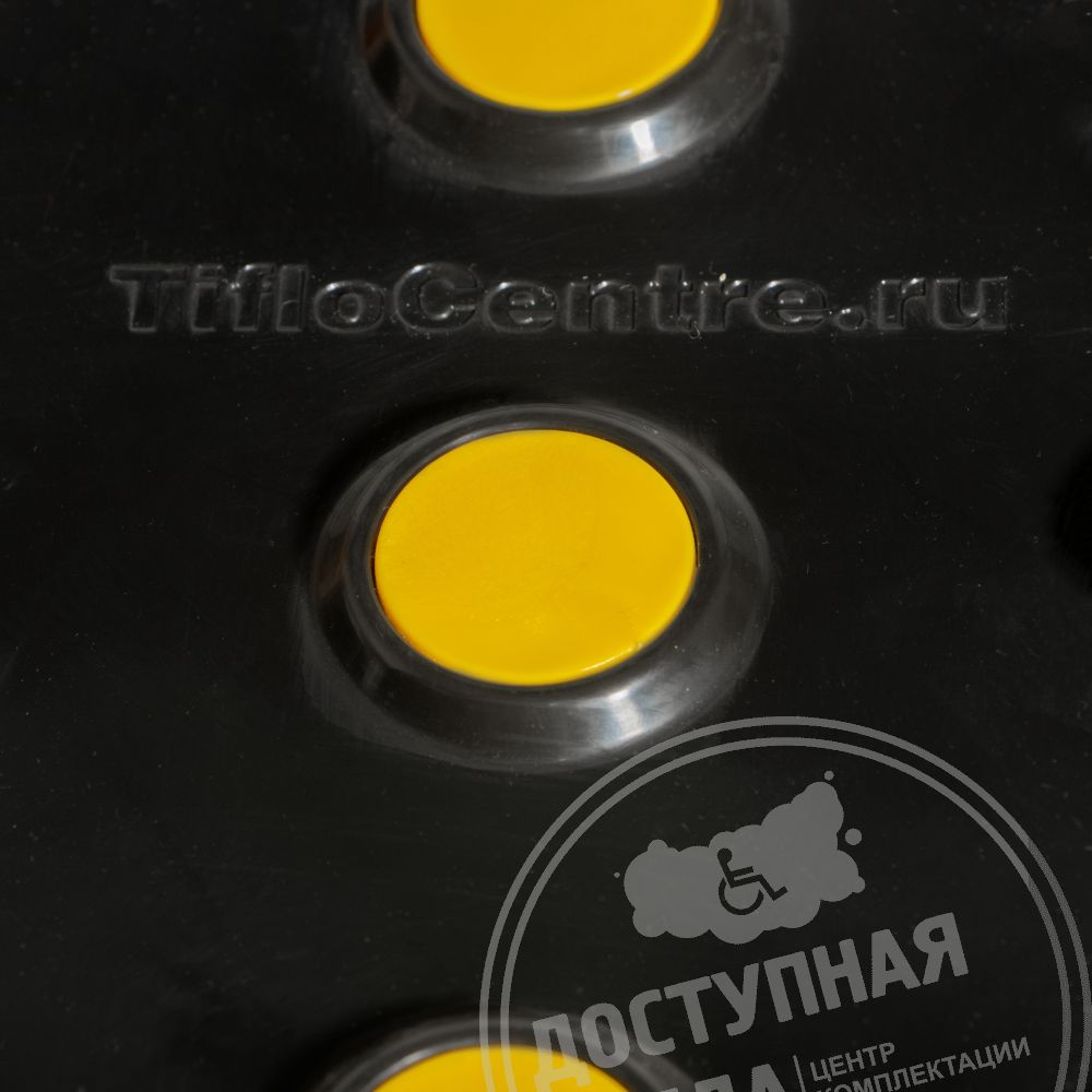 Плитка тактильная контрастная, со сменными гладкими вставками (преодолимое препятствие, поле внимания, конусы линейные), 300x300x6, PU/PL, черный/желтый