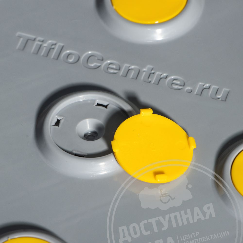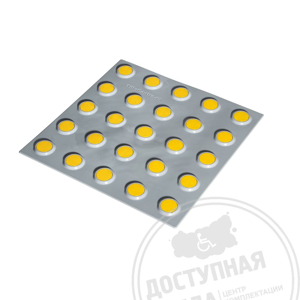 Плитка тактильная контрастная, со сменными гладкими вставками (преодолимое препятствие, поле внимания, конусы линейные), 300x300x6, PU/PL, серый/желтый