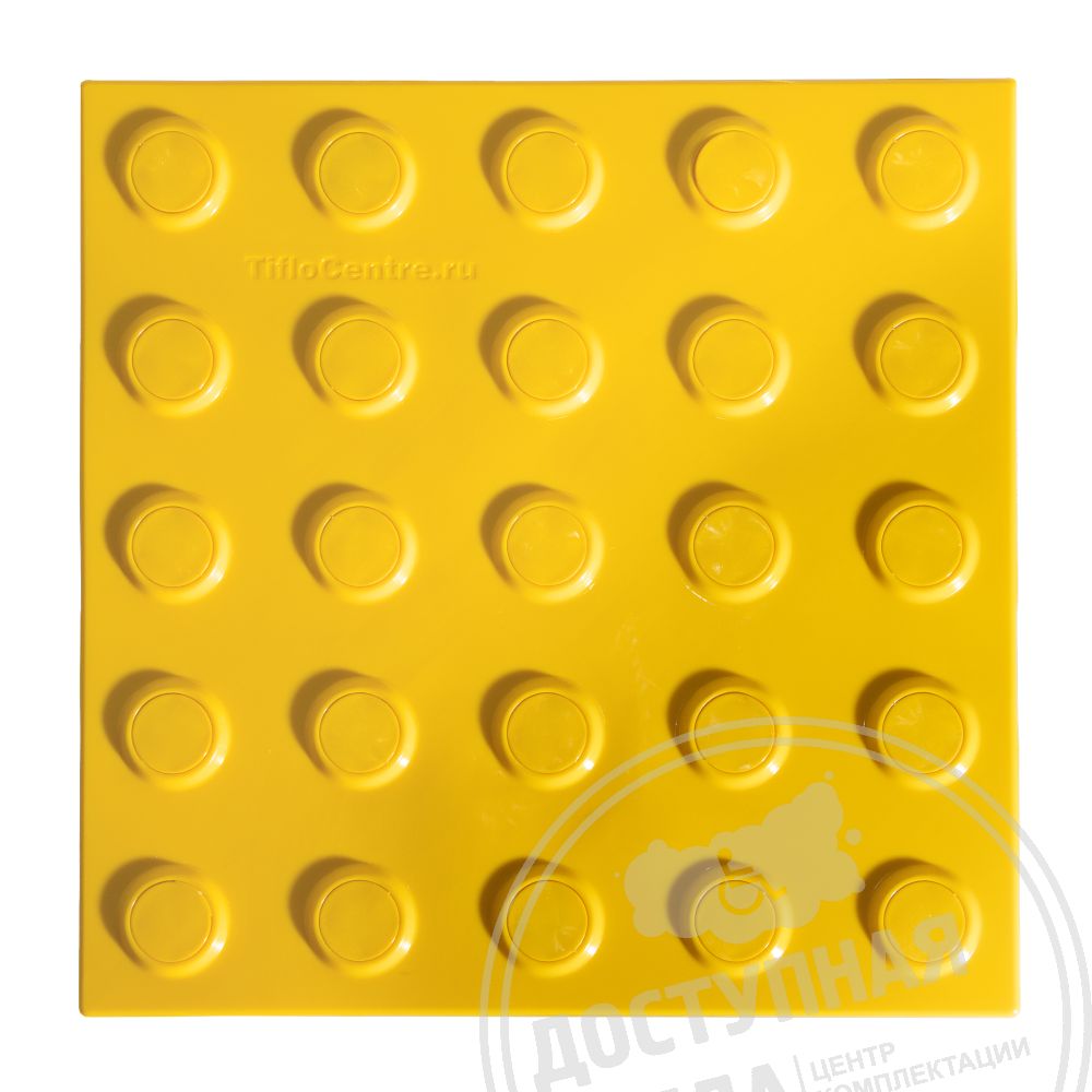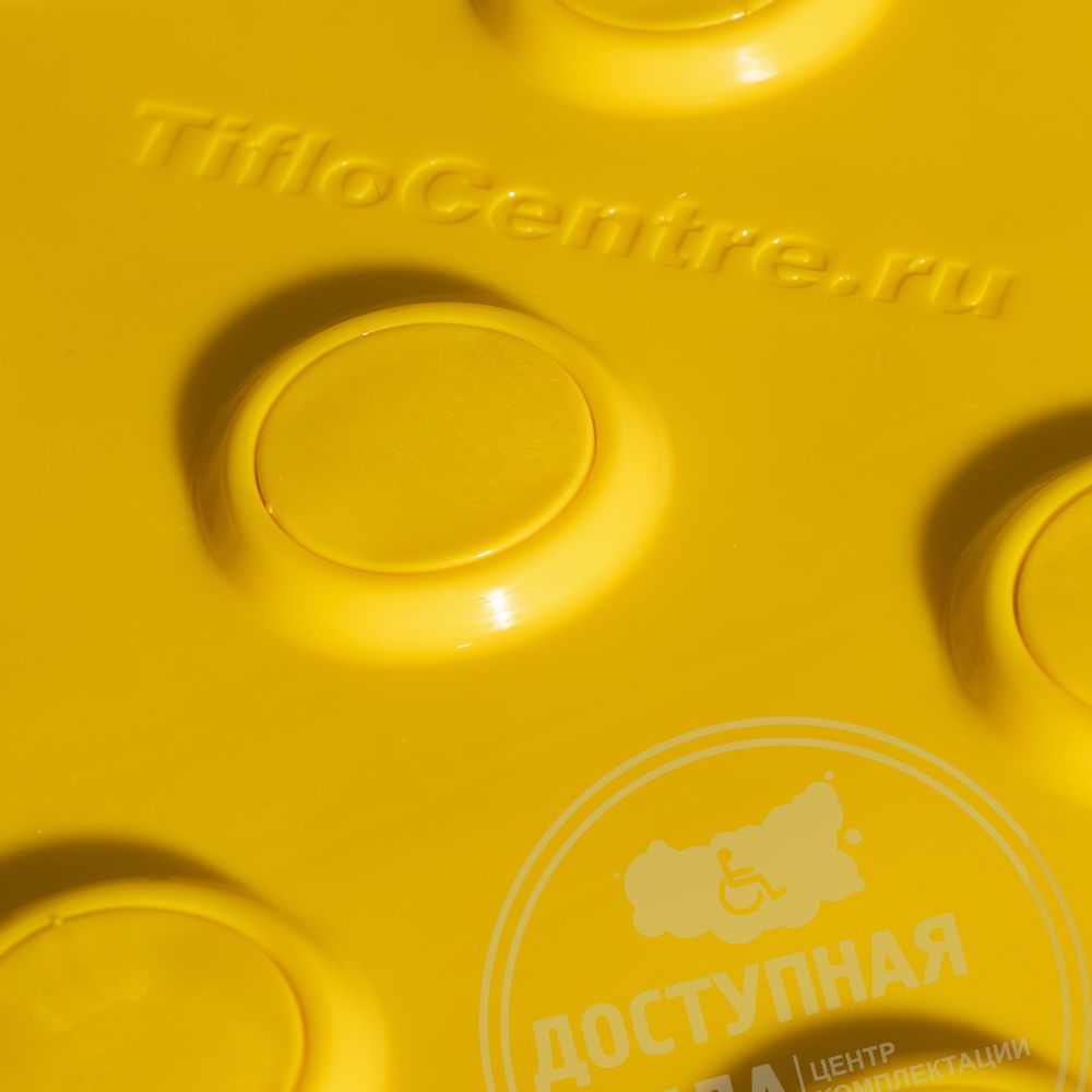 Плитка тактильная контрастная, со сменными гладкими вставками (преодолимое препятствие, поле внимания, конусы линейные), 300x300x6, PU/PL, желтый/желтый