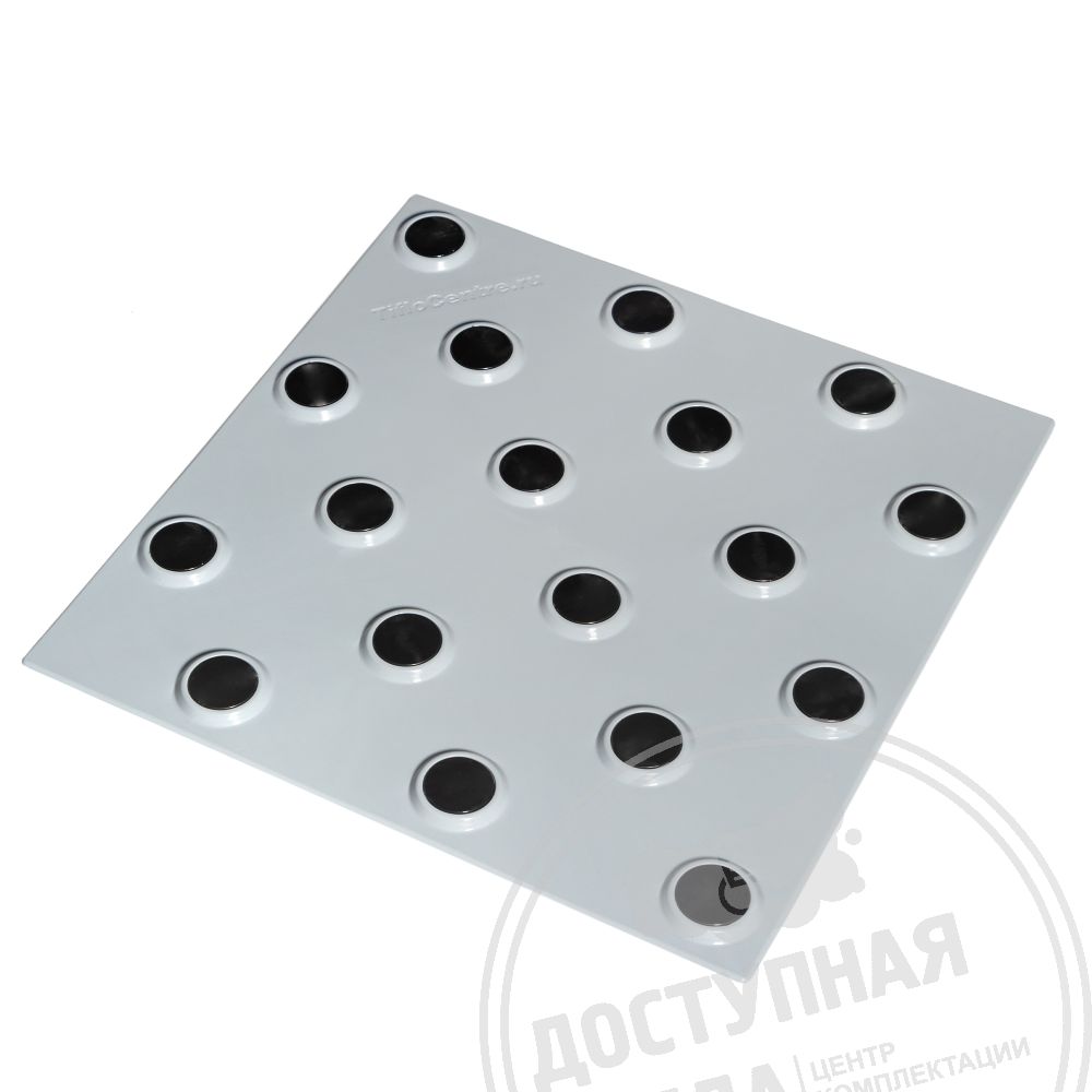 Плитка тактильная контрастная, со сменными гладкими вставками (непреодолимое препятствие, конусы шахматные), 300x300x6, PU/PL, серый/черный