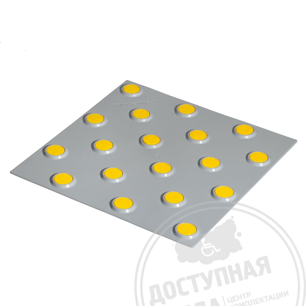 Плитка тактильная контрастная, со сменными гладкими вставками (непреодолимое препятствие, конусы шахматные), 300x300x6, PU/PL, серый/желтый