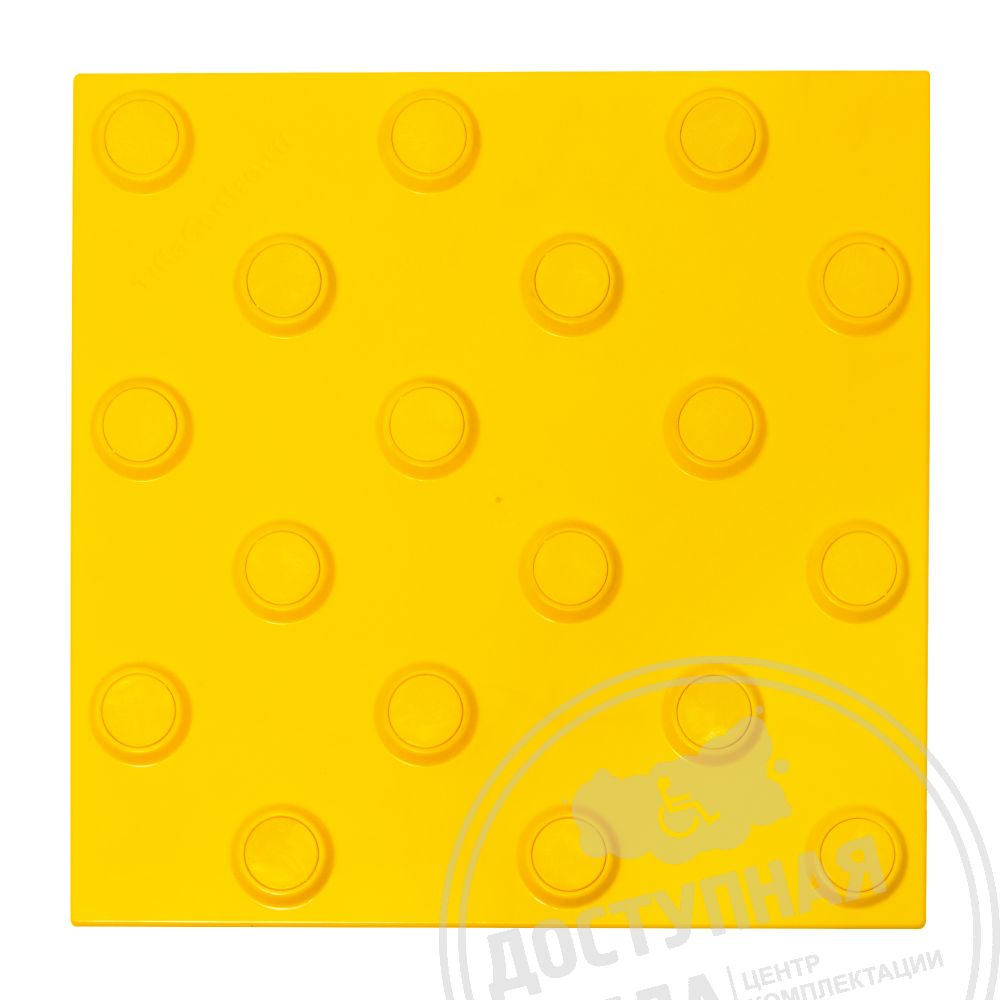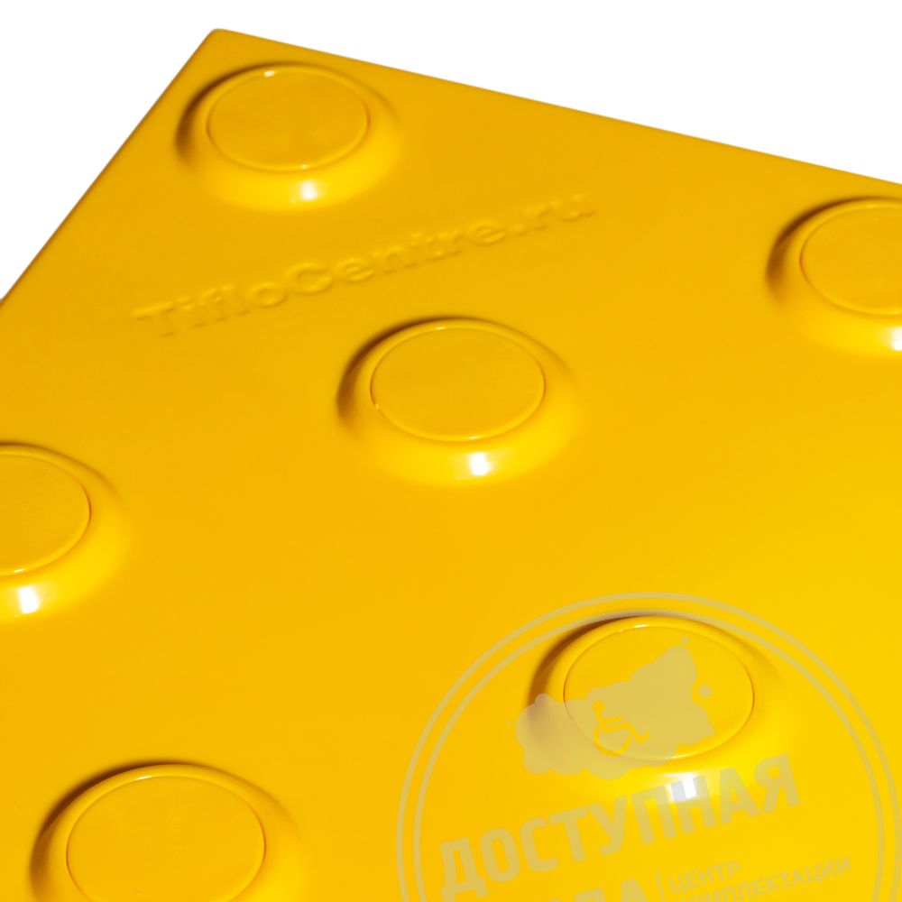 Плитка тактильная контрастная, со сменными гладкими вставками (непреодолимое препятствие, конусы шахматные), 300x300x6, PU/PL, желтый/желтый