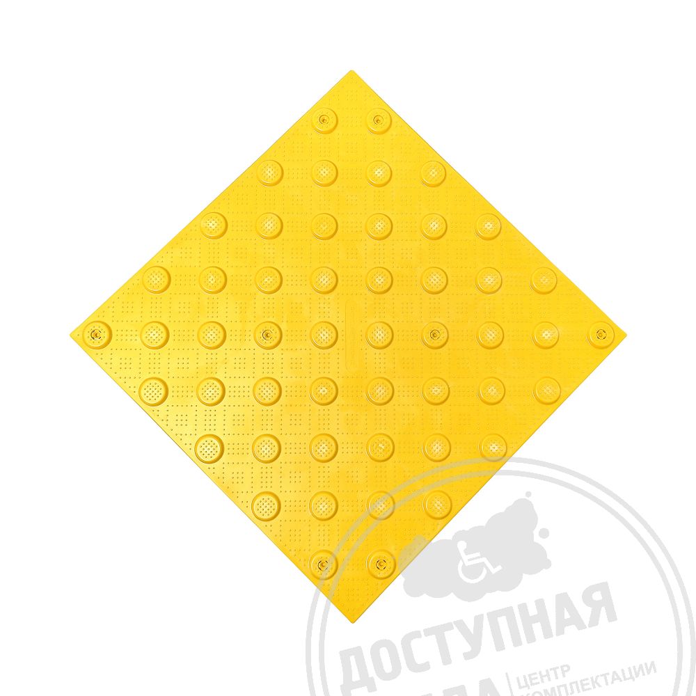 Плитка тактильная (непреодолимое препятствие, конусы шахматные) противоскользящая, 500x500x5, ПВХ, желтый
