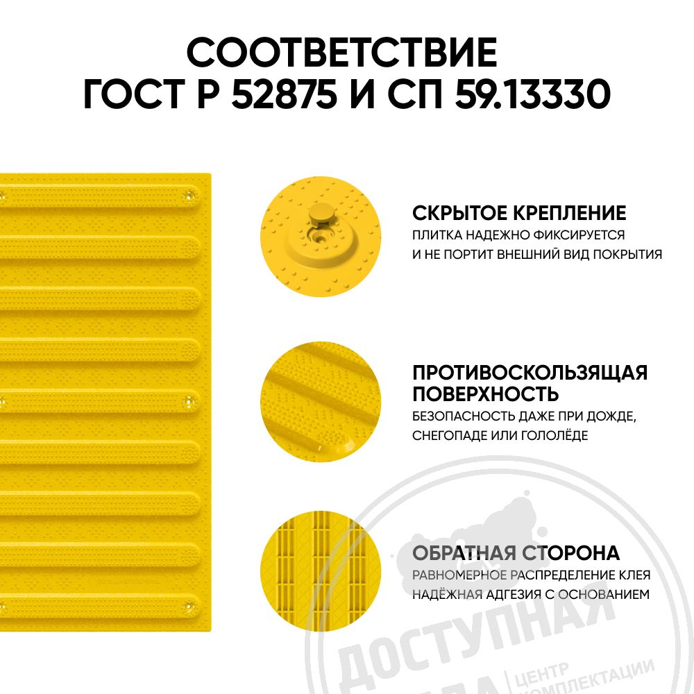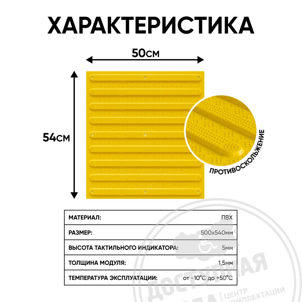 Плитка тактильная (направление движения, полоса) противоскользящая, 500х540х5, ПВХ, желтый