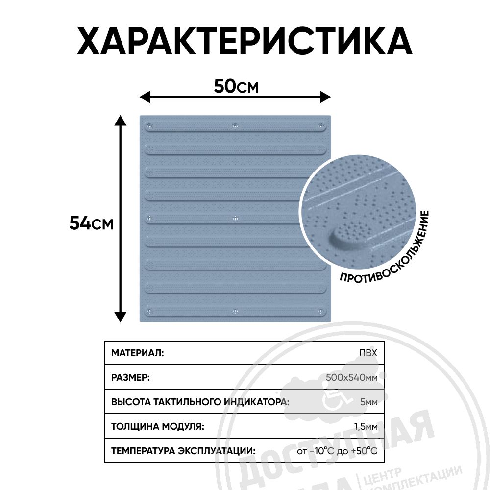 Плитка тактильная (направление движения, полоса) противоскользящая, 500х540х5, ПВХ, серый