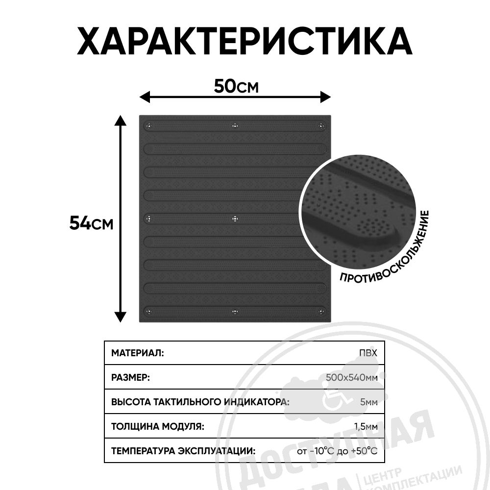 Плитка тактильная (направление движения, полоса) противоскользящая, 500х540х5, ПВХ, черный