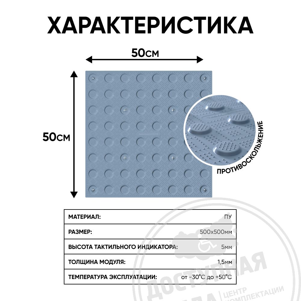 Плитка тактильная (преодолимое препятствие, поле внимания, конусы линейные) противоскользящая, 500x500x5, ПУ, серый
