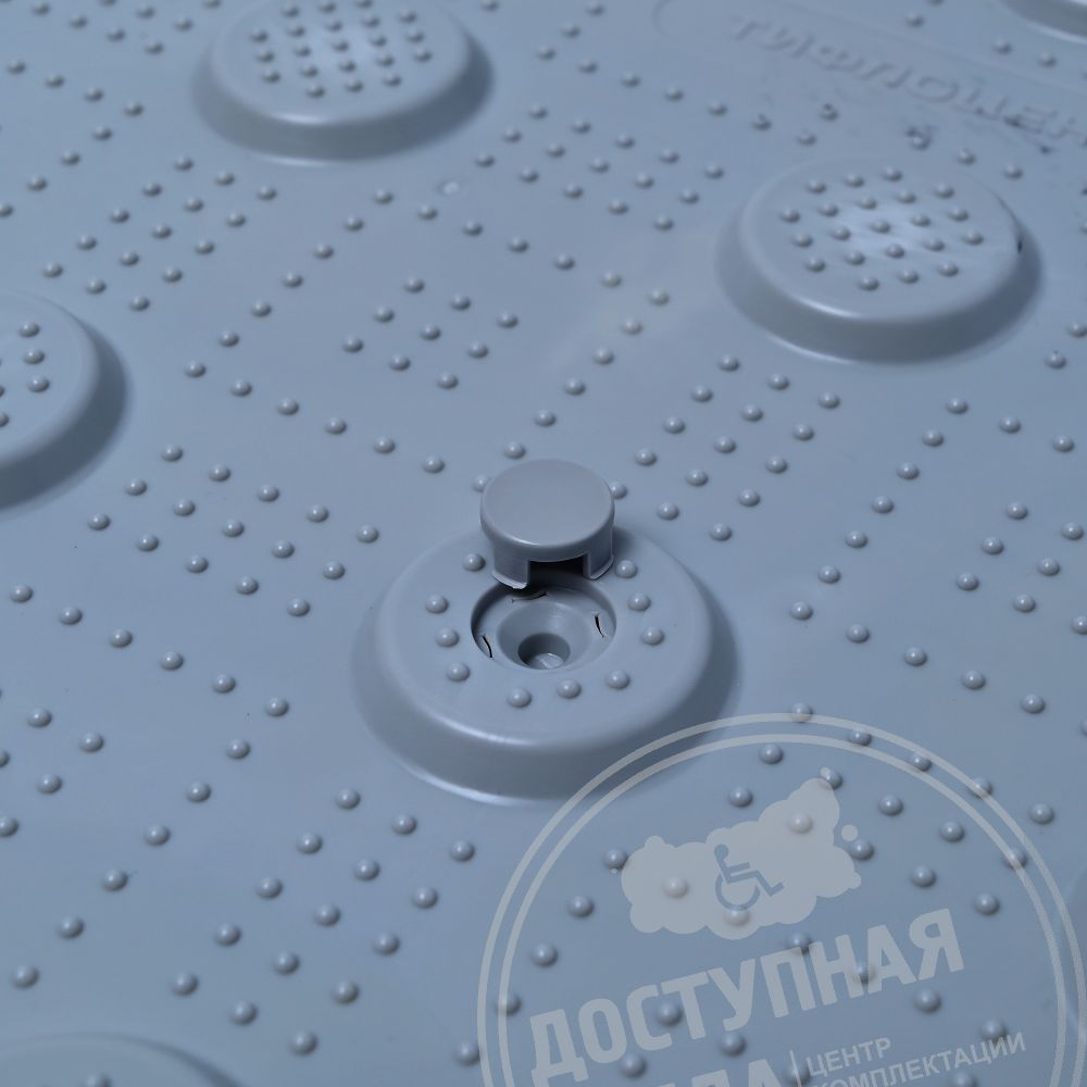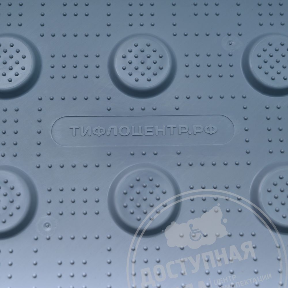 Тактильные рифы в форме усечённых конусов, расположенных в шахматном порядке, сигнализируют незрячим и слабовидящим людям о наличии непреодолимого препятствия на пути. Для повышения прочности внутренняя часть конусов усилена рёбрами жёсткости цельнолитой конструкции толщиной не менее 1 мм. Размер ячеек составляет не более 5х5 мм, при этом количество усилений на один конус не менее 4. Такая конструкция способствует равномерному распределению клея и обеспечивает надёжную адгезию с основанием. Параметры предусматривают толщину основания 2 мм, высоту рифа 5 мм и скрытое крепление для дополнительной фиксации.