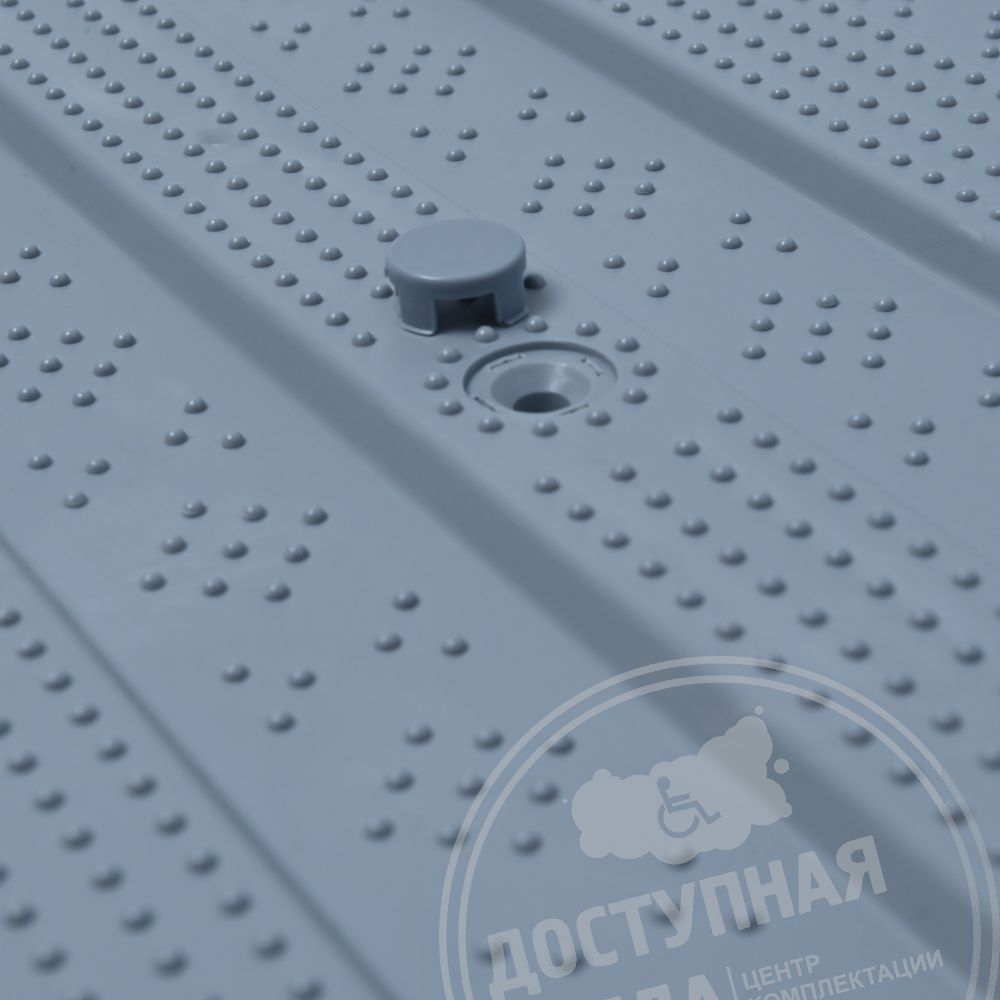 Для обеспечения визуального контраста с поверхностью пола и более комфортного восприятия слабовидящими людьми плитка окрашена в серый цвет. Монтаж производится на существующее напольное основание с использованием специального клея, например, FIXVERT.