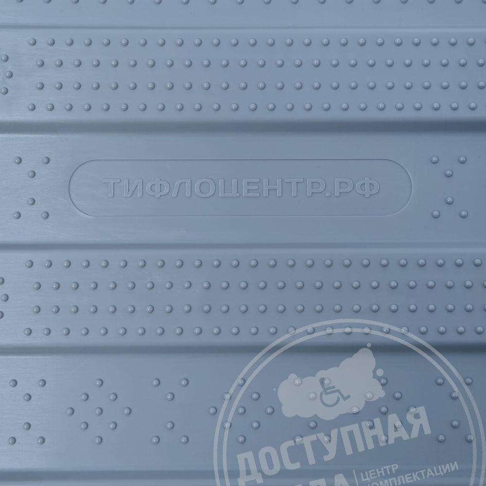 Тактильные рифы, выполненные в виде девяти параллельных полос, информируют людей с нарушением зрения о "Поле получения услуги". Также изделие может применяться в качестве локального предупредительного указателя при зонировании участков перед выходом с тротуара на пешеходный переход или перед пересечением с местным проездом (направление рифов указывает движение в сторону противоположной стороны). Для повышения долговечности внутренняя часть рифов усилена рёбрами жёсткости цельнолитой конструкции толщиной не менее 1 мм. Размер ячеек составляет не более 7,2х5 мм, при этом на одну полосу приходится не менее 12 ячеек. Такая конструкция обеспечивает равномерное распределение клея и надёжную адгезию с основанием.