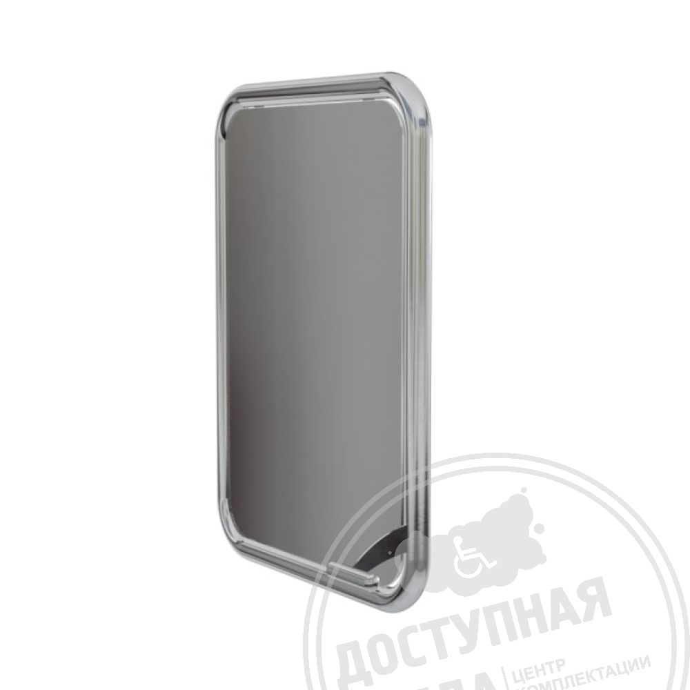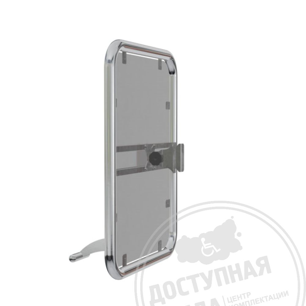 Поворотное зеркало для маломобильных групп — важный элемент обустройства доступных санузлов. Каркас из нержавеющей стали оснащён надёжным поворотным механизмом. Эргономичная ручка позволяет людям в инвалидных креслах самостоятельно регулировать наклон для удобного использования.