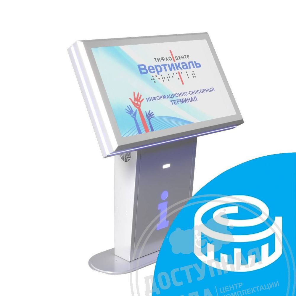 Антивандальный, стальной корпус с контрастной контурной подсветкой, наклонная сенсорная LED-панель 43, предустановленное программное обеспечение с функцией чтения с экрана и адаптивным меню для инвалида. Дополнительно устанавливаются функции для слабослышащих.
