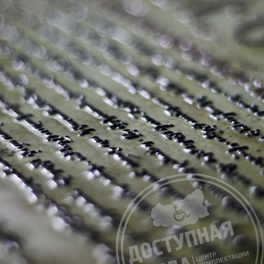 Тактильная поверхность представляет собой рельеф, состоящий из набора полимерных слоёв, где каждый последующий слой полимеризуется на поверхности предыдущего при помощи УФ излучения. Высота рельефно-точечного шрифта 0,6-0,7 мм, но не менее 0,5 мм по ГОСТ Р 51671-2020. На портрете возможно расположение тифлометок для передачи более полного описания репродукции, с учётом особенностей восприятия информации тотально слепыми людьми. Тактильная 2D картина идет в комплекте вместе с багетом.