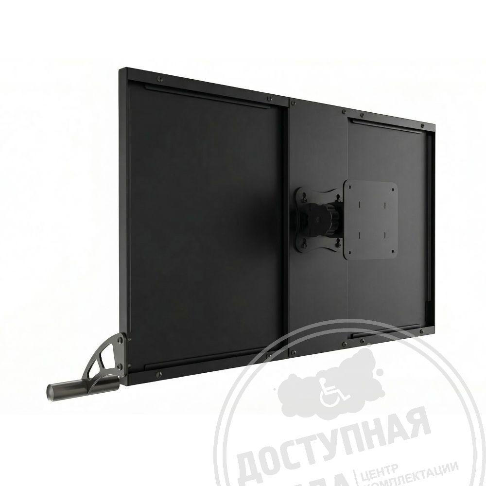 Выполнено в соответствии с условиями универсального дизайна, подходит как для маломобильных групп населения, так и для людей без нарушения здоровья. Оборудовано поворотным механизмом, позволяющим, с помощью рукоятки, зафиксировать зеркало в нужном положении для комфортной эксплуатации.